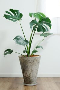 大きな切れ込みや穴がある独特な葉が特徴のモンステラ。